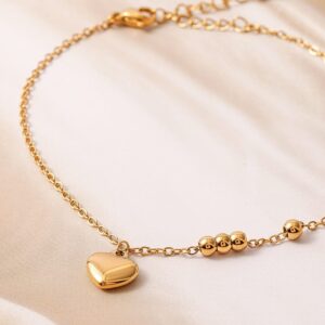 18K Gold Plated Stainless Steel Tarnish-Free Waterproof Demi-Fine Heart Anklet – Gold