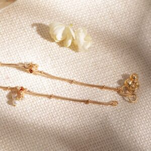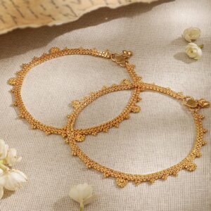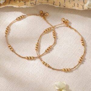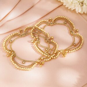 Set of 2 Pearls & Stone Studded 24K Gold Plated Layered Anklet – Gold