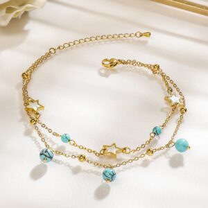 18K Gold-Plated StainlessSteel TarnishFree Waterproof Turquoise Beads & Star Anklet – Turquoise
