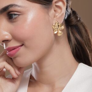 18K Gold Plated Stainless Steel Tarnish-Free Waterproof Floral Stud Earrings – Gold