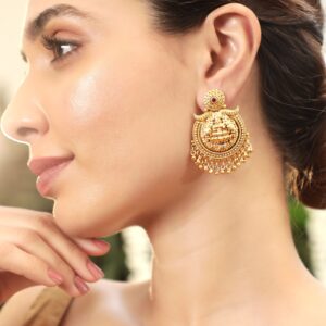 22k Gold-Plated Temple Chandbali Earrings in Timeless Elegance – Gold