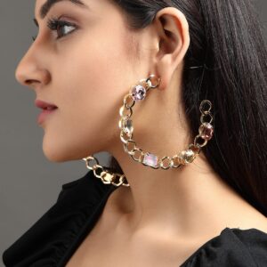 18K Gold-Plated Cubic Zirconia Studded Statement Hoop Earrings – Gold