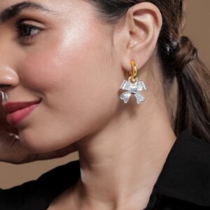 18K Gold & Silver Dual Plating Bowknot Design Drop Earrings – Gold
