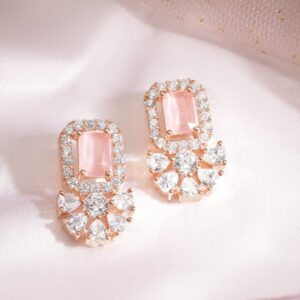 Rose Gold Plated Handcrafted Zircon Stone Stud Earrings – Rose Gold