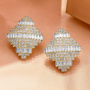 18K Gold-Plated Cubic Zirconia Studded Statement Stud Earrings – Gold