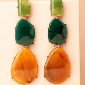18K Gold-Plated Green & Amber Beaded Stylish Drop Earrings – Green & Amber