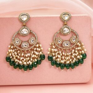 22K Gold-Plated Green & White Pearl Kundan Studded & Beaded Chandelier Earrings – Gold