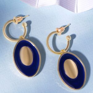 18K Gold-Plated Oval Drop Earrings with Bold Blue Enamel Accents – Gold