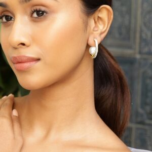 18K Gold-Plated Pearl Centerpiece Cubic Zirconia Half Hoop Earrings – Gold