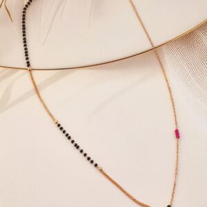 18K Gold-Plated Ruby & Cubic Zirconia Studded Black and Gold Beaded Mangalsutra – Gold