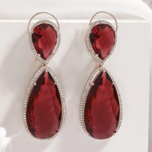 18K Gold-Plated Ruby Red & Cubic Zirconia Studded Premium Drop Earrings – Gold