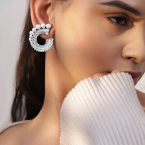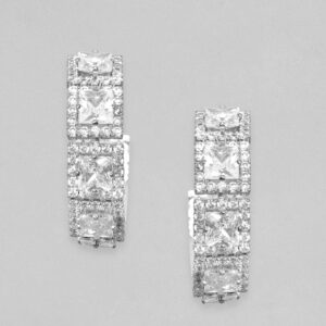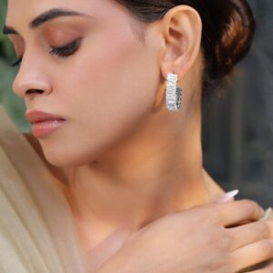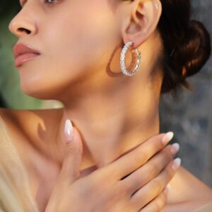Rhodium Plated Crystal Cubic Zirconia Studded Hoop Earrings – Silver