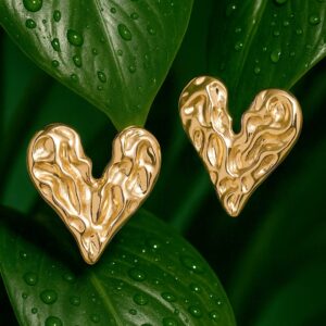 18K Gold Plated StainlessSteel Tarnish-Free Waterproof Textured Heart Stud Earrings – Gold