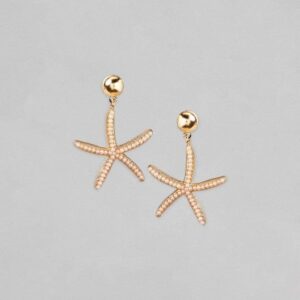 18K Gold Plated Starfish Shaped Drop Earrings with Pearl Beading Detailing