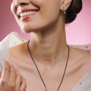 Black Gold-Plated Beaded CZ-Studded Mangalsutra Set – Gold