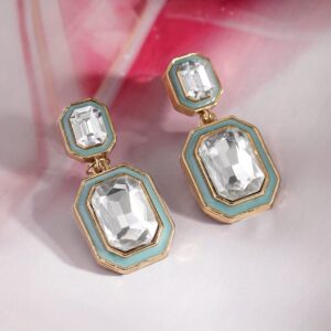 18K Gold-Plated Layered Emerald Green Crystal Dangle Earrings – Gold