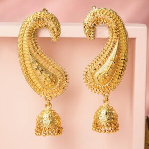 22K Gold-Plated Oversized Paisley Ear-Cuff Jhumka Earrings with Ghungroo Dome Drop