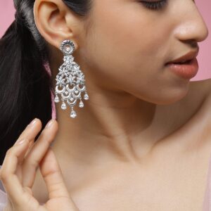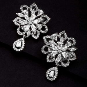 Rhodium-Plated White Cubic Zirconia Cascading Floral Chandelier Earrings – Silver 1