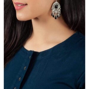 Oxidised Silver Toned Handcrafted Black Enamel Handpainted Drop Earrings – Black