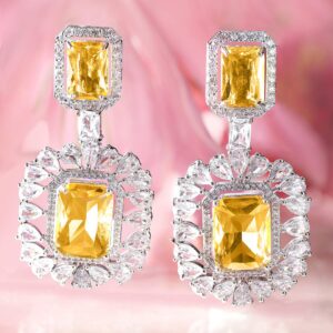 Rhodium plated AAA Cubic Zirconia Yellow Sapphire studded Statement Dangle Earring – Silver::Yellow