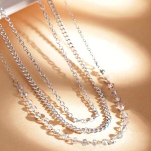 Rhodium-Plated Crystal Beaded & Chain-Link Multi-Layered Necklace