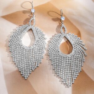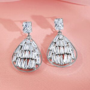 Rhodium-Plated Teardrop Crystal Dangle Earrings – SIlver