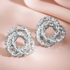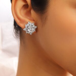 Rhodium-Plated Cubic Zirconia Floral Cluster Stud – Elegant Statement Jewelry – Silver