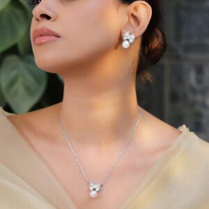 Rhodium-Plated Cubic Zirconia Studded Premium Floral Jewellery Set