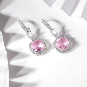 Rhodium Plated Pink Zirconia Cushion Cut Classy Drop Earring – Silver::Pink