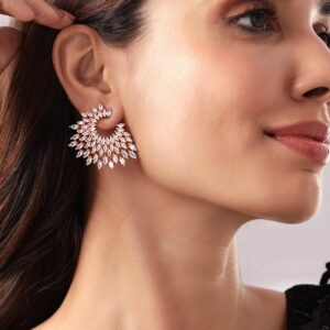 rose gold plated jhumka earrings with studded american stones. – Silver