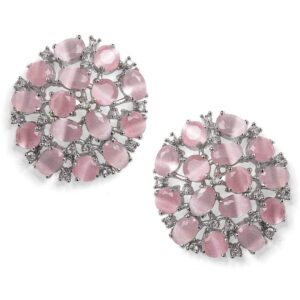 Silver Plated Handcrafted Pink Zircon Stone Stud Earrings – Pink