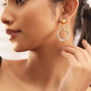 18K Gold Plated Triple-Tone Hoop Earrings in Gold, Silver & Copper Circular Design