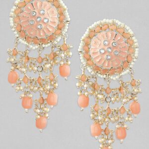 22K Gold-Plated Peach & White Beaded Pearl and AD Studded Dangle Earrings – Gold