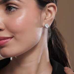 Rhodium-Plated Clover Design Cubic Zirconia Stud Earrings – Silver