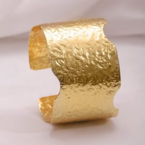22K Gold Plated Hammered Statement Demi-Fine Wide Cuff Bracelet – Gold