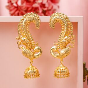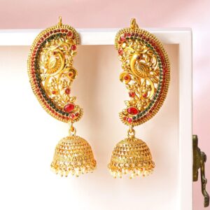 22K Gold-Plated Oversized Peacock Ear-Cuff Jhumka Earrings with Ghungroo Dome Drop