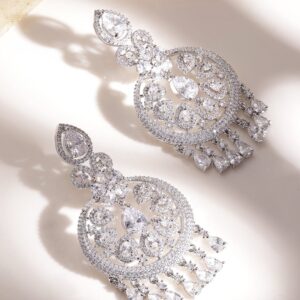 Ethereal Elegance Rhodium-Plated AD Chandelier Earrings – Silver