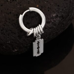 Men’s Stainless Steel Silver-Plated Tarnish-Free Waterproof Razor Charm Earring – Silver