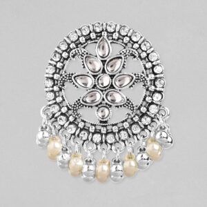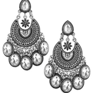 Oxidized Silver-Plated White AD Stone Studded Chandelier Earrings in Silver Tone