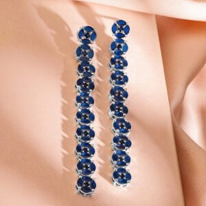 Rhodium-Plated Blue Cubic Zirconia Studded Drop Earrings – Blue