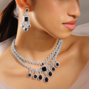 Rhodium-Plated Blue Sapphire & AAA Cubic Zirconia Luxe Statement Jewellery Set in Silver Tone for Women