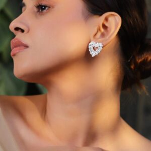 Rhodium Plated Cubic Zirconia Heart Shape Stud Earrings – Silver