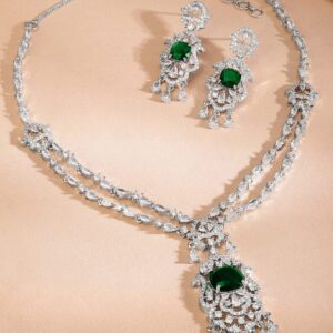 Rhodium-Plated Emerald Green & White AAA Cubic Zirconia Statement Jewellery Set