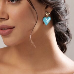 18K Gold Plated Blue Enamel Heart Motif Earrings – Blue::Gold