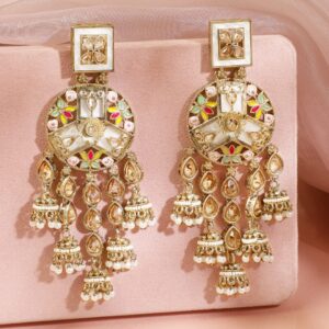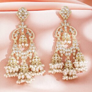 18K Gold-Plated Kundan & Zicronia & Pearl Traditional Chanbali Earring – Gold
