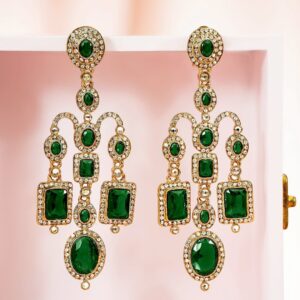 18K Gold-Plated Layered Emerald Green Crystal Dangle Earrings – Gold