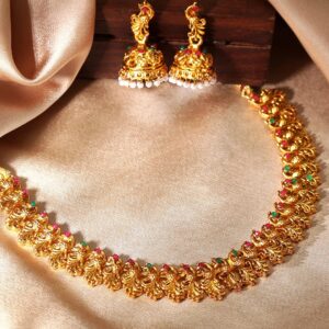 22K Gold-Plated Red & Green Stone Studded Handcrafted Traditional Temple Jewellery Set – Gold