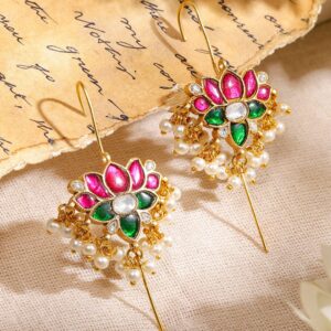 18K Gold-Plated White Kundan & Glossy Ruby Pink & White Pearl Beaded Long Jhumka Earring Extension – Design 2