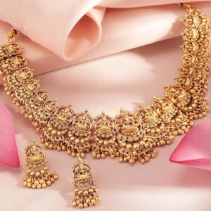 24K Gold Plated Goddess Lakshmi Motif Handcrafted Traditional Temple Jewellery Set – Gold