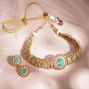 24K Gold Plated Handcrafted Mint Green & White Cubic Zirconia Studded Choker Set – Green